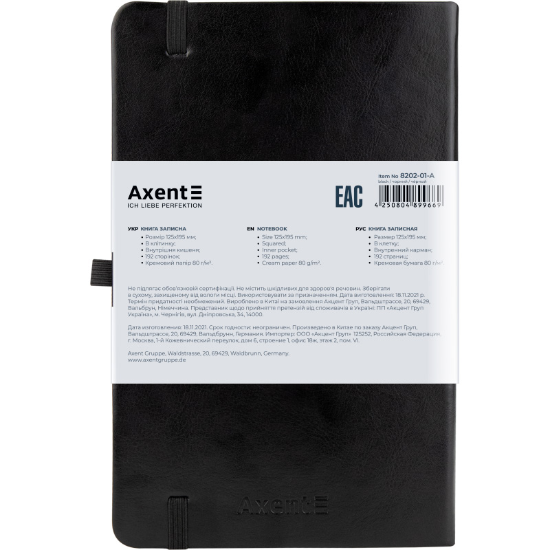 8202-01-A Книга записная Partner Lux, 125x195 мм, 96 л., клетка, черная, Axent