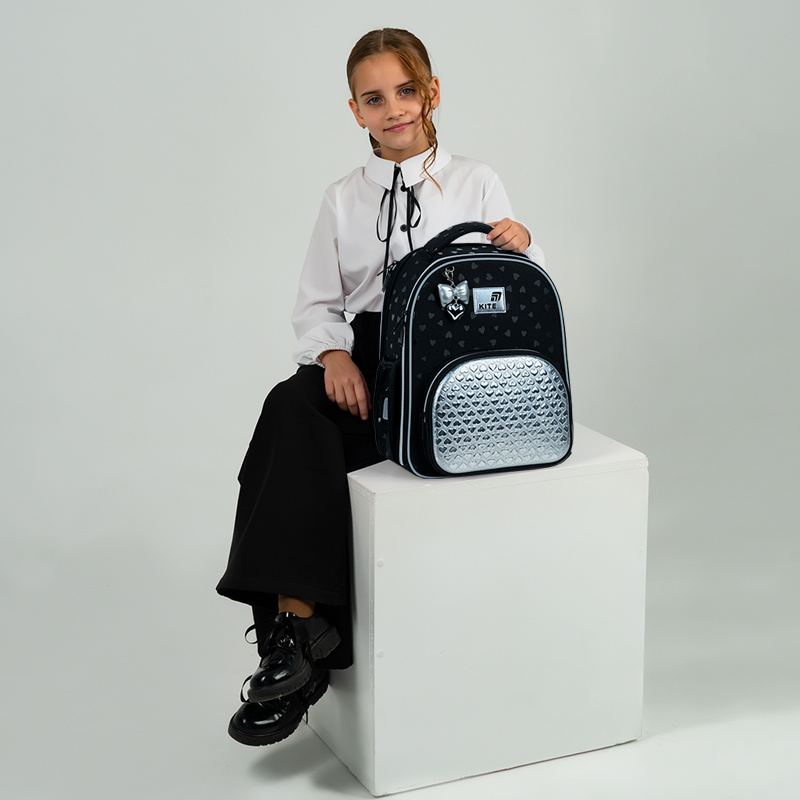 K26-556M-2 Рюкзак Kite Education каркасный Black&Silver