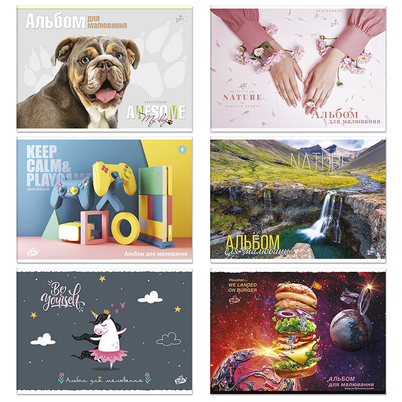 АВ-6 Альбом для рисования 16 л. 100 г/м2, полноцветная картонная обложка, БрискАВ-31 Альбом для рисования 20 л. 120 г/м2 «Gold Brisk», полноцветная картонная обложка, Бриск