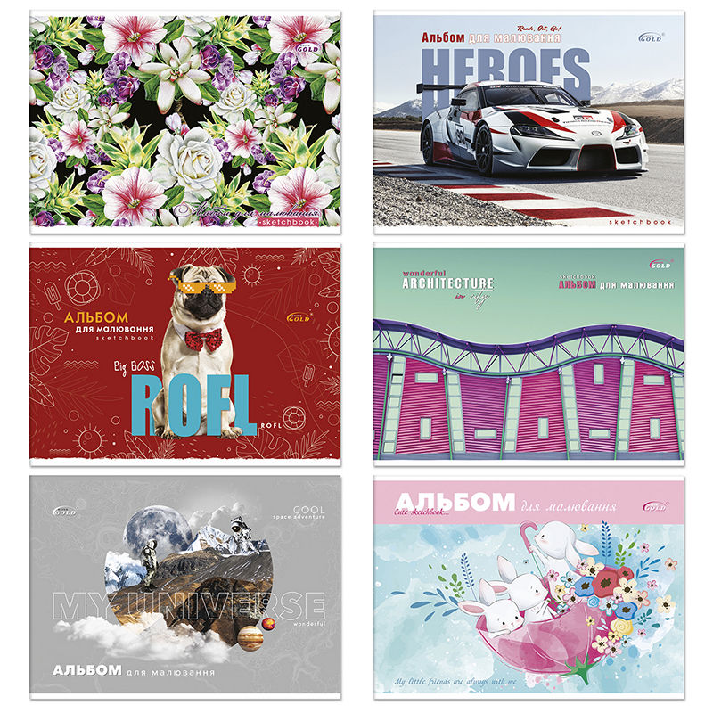 АВ-30 Альбом для рисования 12 л. 120 г/м2 «Gold Brisk», полноцветная картонная обложка, Бриск