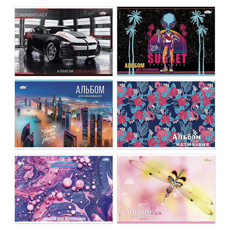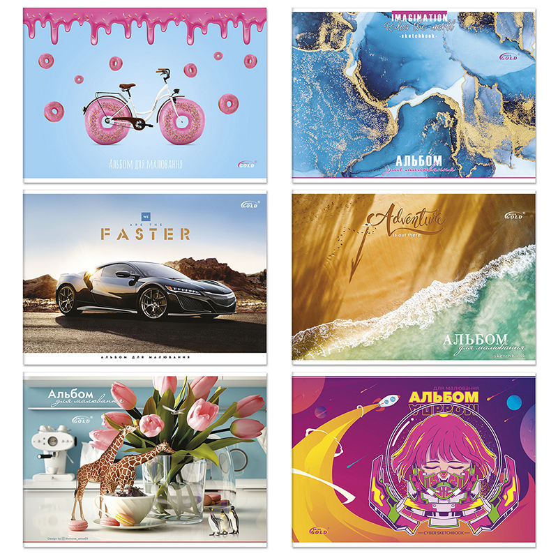 АВ-15 Альбом для рисования 20 л. 100 г/м2, полноцветная картонная обложка, БрискLK22-243 Альбом для рисования, 30 л. 100 г/м2, спираль, гибридний лак + УФ, Likee
