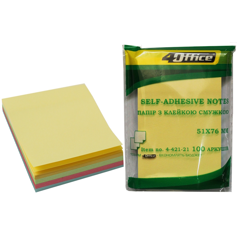 4-421-21 4OFFICE Бумага клейкая 51x76 мм 100 л. микс 4 цвета по 25 л.