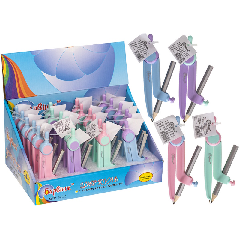 9-605 БАРВІНОК Циркуль пластиковый 120 мм с универсальным держателем и карандашом, ассорти