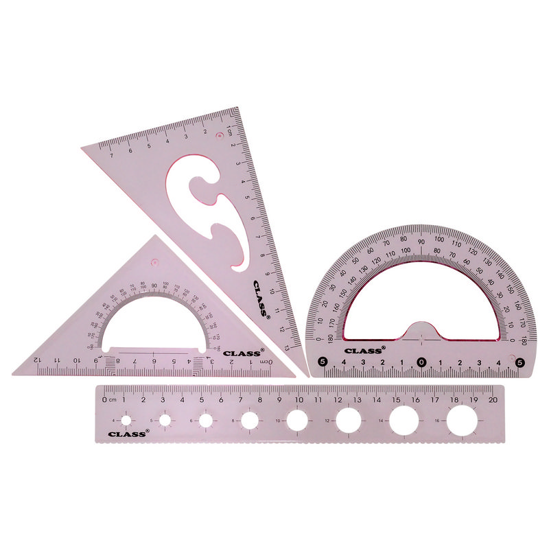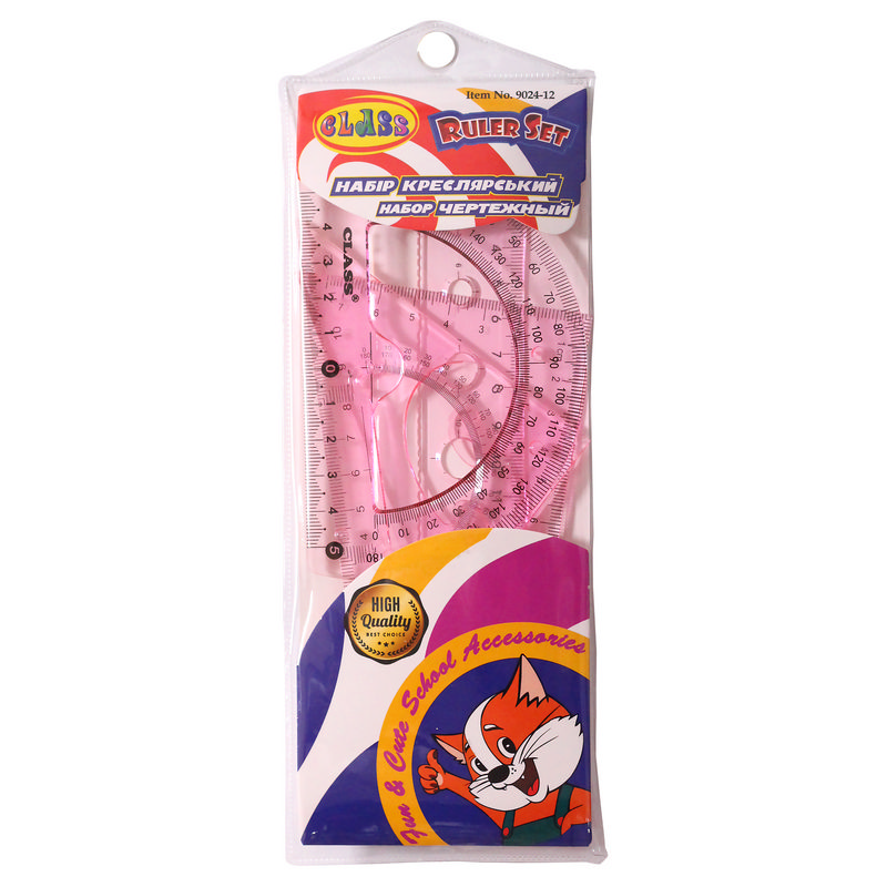 9024-12 CLASS Набор: линейка 20 см + 2 треугольника + транспортир пластиковые розовые в ПВХ пенале