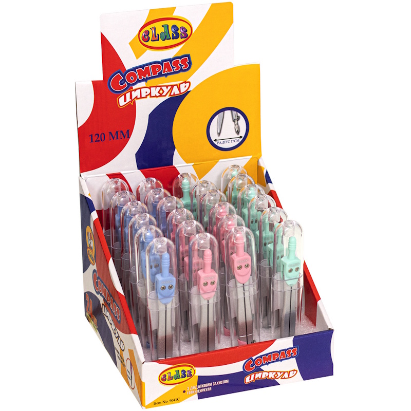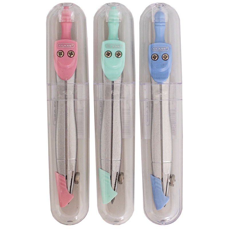9041C CLASS Циркуль металлический 120 мм с защитой иголки, в пластиковом пенале, ассорти