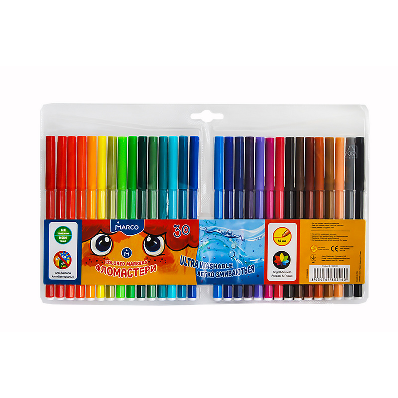 1690-30 Фломастеры 30 цветов Super Washable, Marco