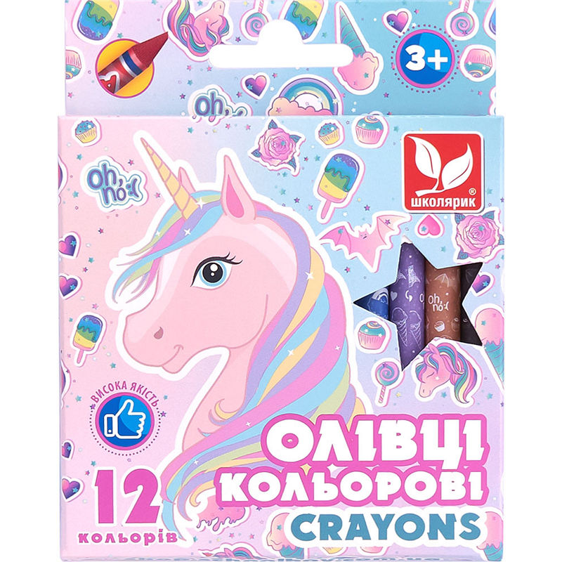 Карандаши цветные каолиновые Crayons Unicorn 12 цветов, Школярик цветов