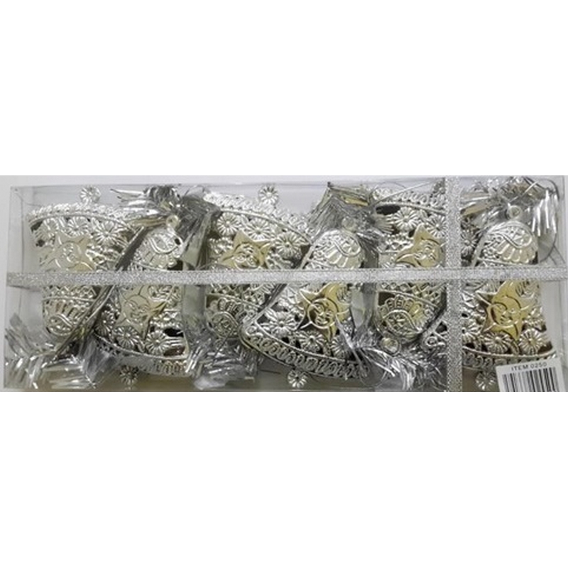 0250 CHRIS Набор: 6 колокольчиков серебристых, пластик., 11 см
