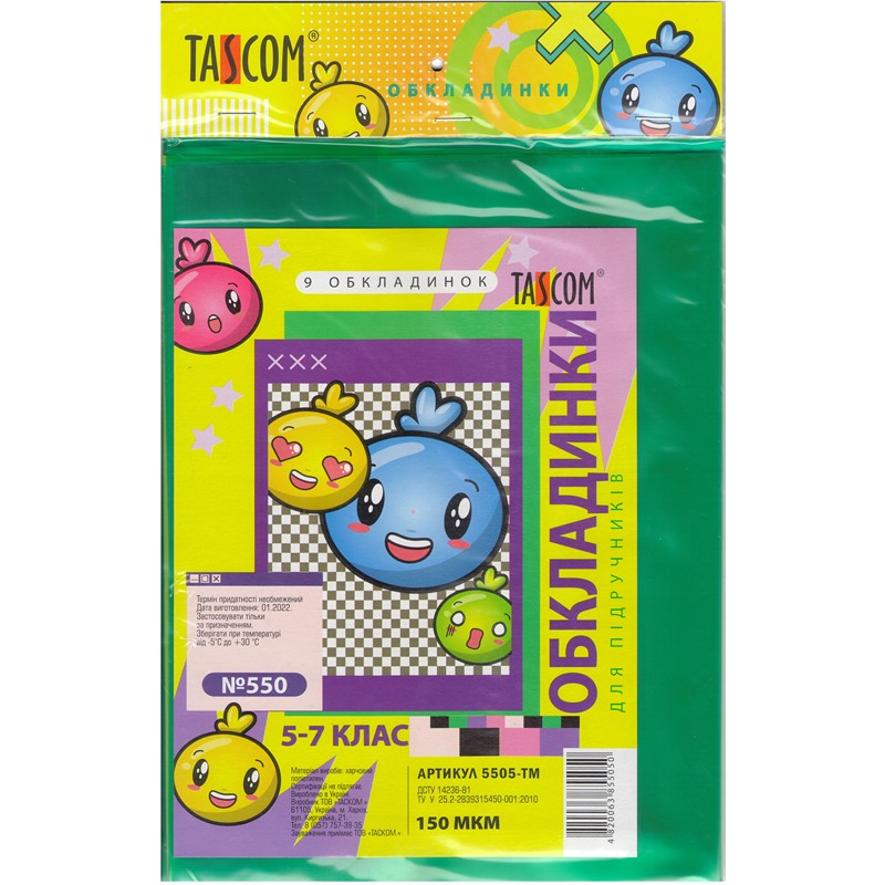 5501-ТМ Комплект 5 обложек для учебников №550 1-4 класс, п/э 150 мкм, TASCOM5508-ТМ Комплект 9 обложек для учебников №550 8-9 класс, п/э 150 мкм, TASCOM
