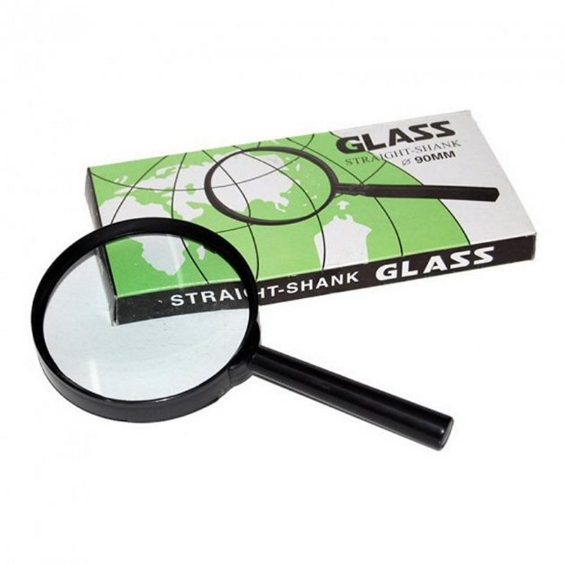 7818-90G Лупа d-90 мм 3-х кратная, стеклянная линза, широкая рамка, пластиковая оправа