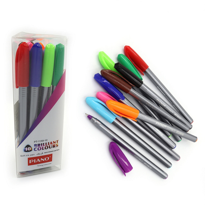 PT-1159-10 Набор масляных ручек 0,7 мм "Correct" треугольный корпус 10 цветов, Piano